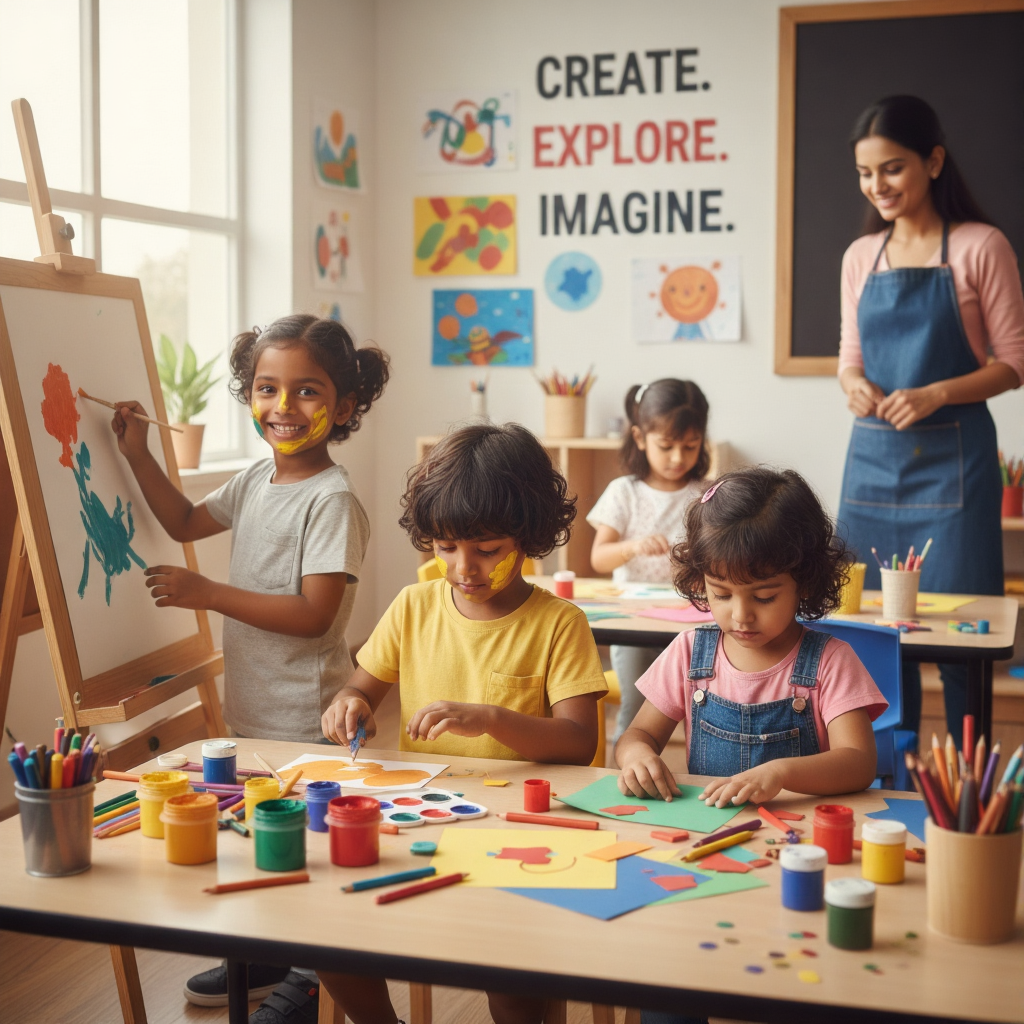 We believe art is fundamental to early education . Through practical experiences like painting  and crafts , children develop their fine motor skills and sharpen cognitive abilities, which unlocks their creative potential .